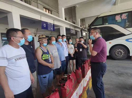 在婁底汽車站,譚主席一行走訪慰問(wèn)在高溫下堅(jiān)守崗位的一線員工,為他們發(fā)放了夏日清涼慰問(wèn)品。譚主席親切與員工們交談,對(duì)他們高溫酷暑下工作的堅(jiān)守和付出表示感謝,叮囑他們?cè)谡J(rèn)真工作的同時(shí),要做好防暑降溫,確保身體健康和生產(chǎn)安全,同時(shí)囑咐在場(chǎng)的企業(yè)負(fù)責(zé)人,要合理安排工作和休息時(shí)間,落實(shí)好高溫作業(yè)下的各項(xiàng)保障措施,為員工創(chuàng)造一個(gè)舒適、安全的工作環(huán)境。聽(tīng)了譚主席的話,在場(chǎng)的員工們深受感動(dòng),紛紛表示,盡管受到高溫天氣和疫情防控的雙重考驗(yàn),但組織的關(guān)心讓大家充滿動(dòng)力和信心,大家一定會(huì)堅(jiān)守崗位,做好本職工作,為疫情防控和交通運(yùn)輸保障做出好的成績(jī)。多年來(lái),作為職工的“娘家人”,婁底市總工會(huì)始終關(guān)心關(guān)愛(ài)企業(yè)和職工,通過(guò)積極開(kāi)展各類關(guān)愛(ài)行動(dòng),傳遞著工會(huì)組織的溫暖,助力企業(yè)發(fā)展。此次來(lái)我司開(kāi)展送清涼慰問(wèn)活動(dòng),讓酷熱中堅(jiān)守在一線的我司廣大職工感受到工會(huì)“娘家人”的關(guān)心關(guān)愛(ài),極大激發(fā)了大家戰(zhàn)疫情、斗酷暑的工作熱情,激勵(lì)廣大職工為交通事業(yè)發(fā)展做出更大的貢獻(xiàn)。